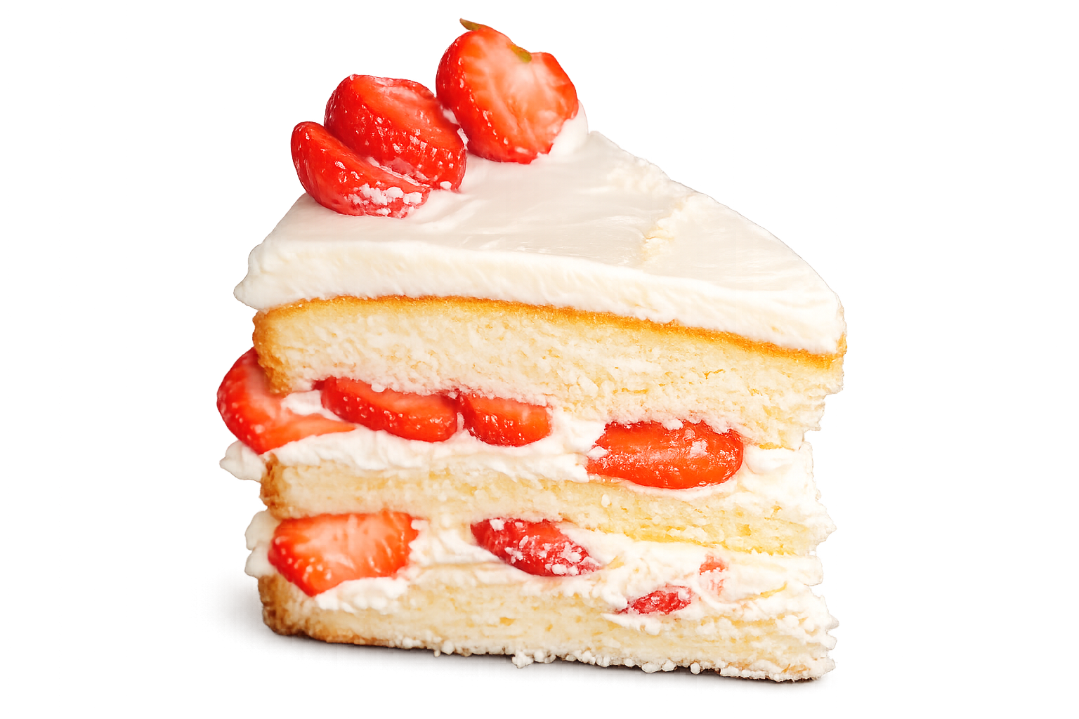 Light sponge layers, fresh cream and strawberries.